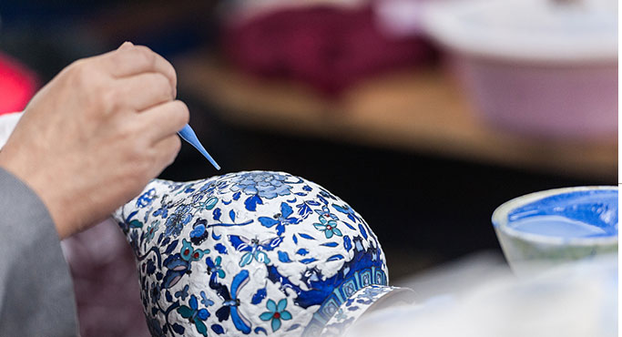 釉與料的結合是指瓷釉的色澤與彩繪原料的顏色,經(jīng)過京德創(chuàng)作團隊設計搭配、組合,形成瓷質(zhì)色澤、顏色搭配設計的最佳效果,給予顧客一件實用美觀、欣賞把玩、饋贈收藏的禮器尚品。